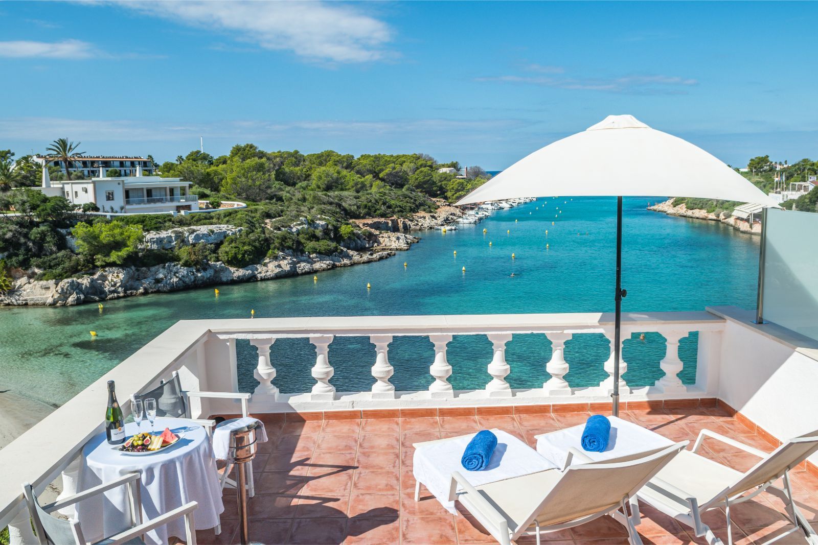 Situado a solo 50 metros de la playa y muy cerca de Ciutadella, el hotel ofrece un entorno natural estratégico. Sus 13 habitaciones únicas se asientan directamente sobre la cala, permitiendo a los huéspedes desconectar en un ambiente íntimo mientras disfrutan de vistas espectaculares y acceso directo al mar.